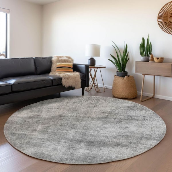 Mayfield Premium Machine Washable Abstract AMF1018 Gray 8 ft. x 8 ft. Round Rug