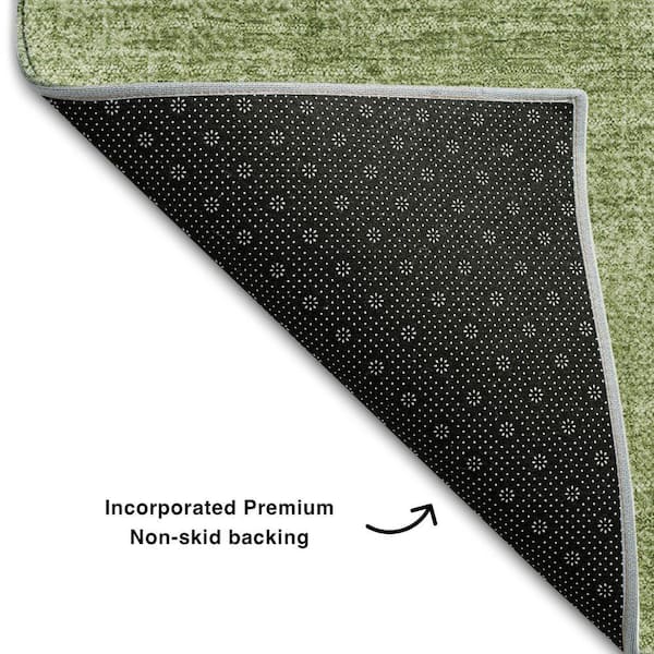 Mayfield Premium Machine Washable Abstract AMF1018 Green 8 ft. x 8 ft. Round Rug