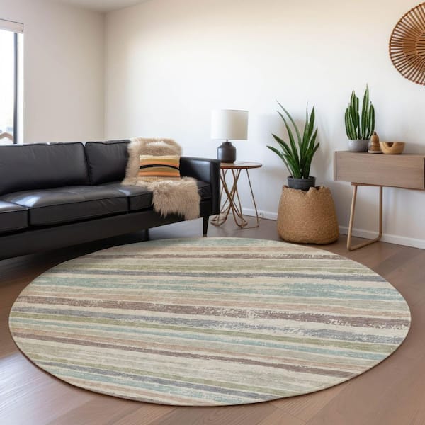 Mayfield Premium Machine Washable Abstract AMF1019 Beige 8 ft. x 8 ft. Round Rug