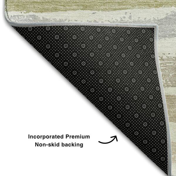 Mayfield Premium Machine Washable Abstract AMF1019 Ivory 8 ft. x 8 ft. Round Rug
