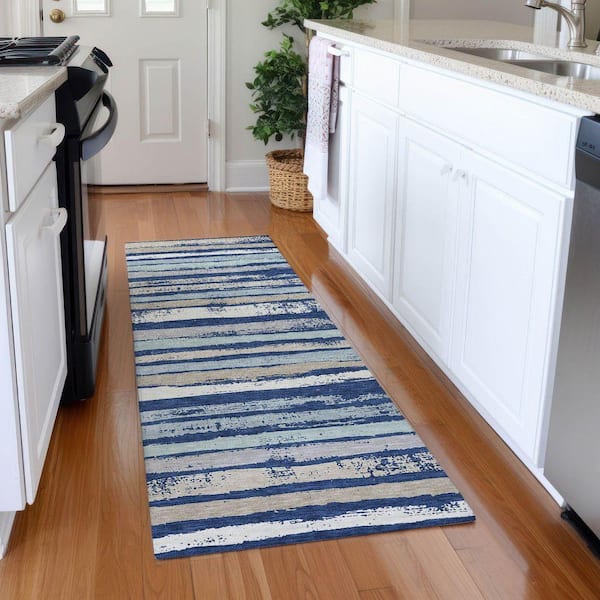 Mayfield Premium Machine Washable Abstract AMF1019 Navy 2 ft. 3 in. x 7 ft. 6 in. Runner Rug