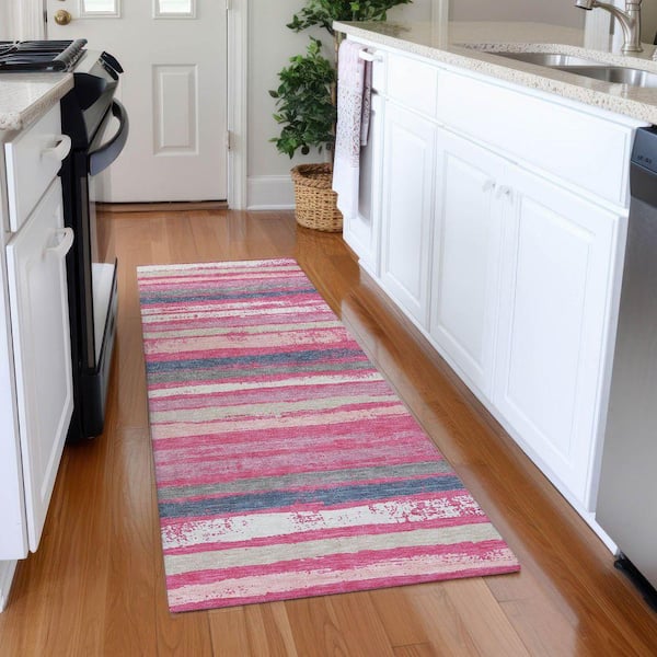 Mayfield Premium Machine Washable Abstract AMF1019 Pink 2 ft. 3 in. x 7 ft. 6 in. Runner Rug
