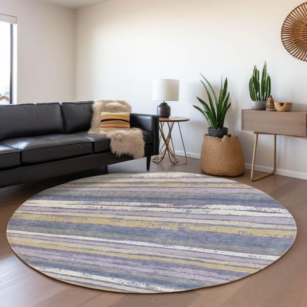 Mayfield Premium Machine Washable Abstract AMF1019 Purple 8 ft. x 8 ft. Round Rug