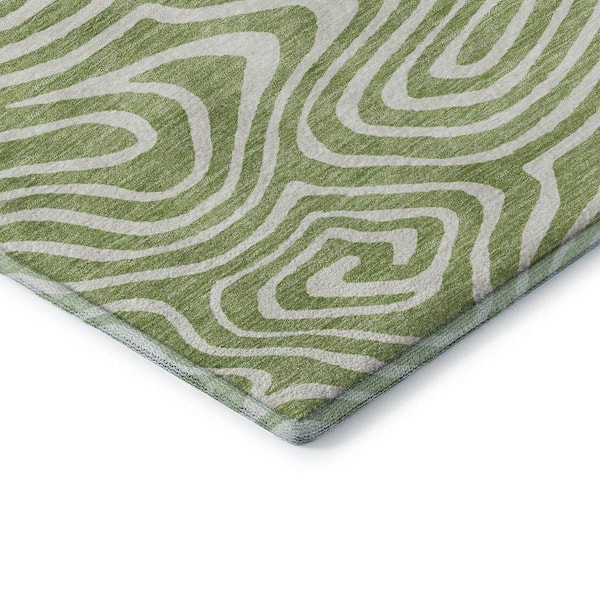 Mayfield Premium Machine Washable Abstract AMF1020 Aloe 5 ft. x 7 ft. 6 in. Area Rug
