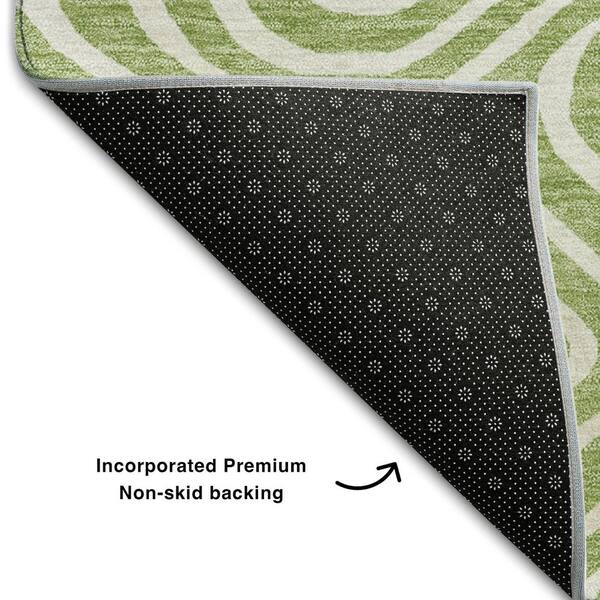Mayfield Premium Machine Washable Abstract AMF1020 Aloe 8 ft. x 8 ft. Round Rug