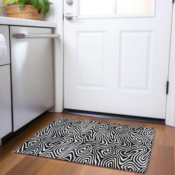 Mayfield Premium Machine Washable Abstract AMF1020 Black 2 ft. x 3 ft. Area Rug