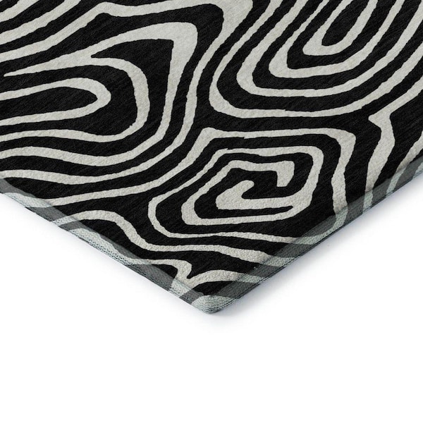 Mayfield Premium Machine Washable Abstract AMF1020 Black 9 ft. x 12 ft. Area Rug