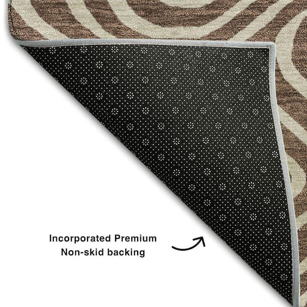 Mayfield Premium Machine Washable Abstract AMF1020 Brown 8 ft. x 8 ft. Round Rug