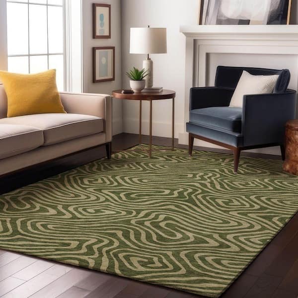 Mayfield Premium Machine Washable Abstract AMF1020 Olive 10 ft. x 14 ft. Area Rug