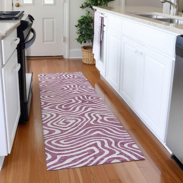 Mayfield Premium Machine Washable Abstract AMF1020 Plum 2 ft. 3 in. x 7 ft. 6 in. Runner Rug