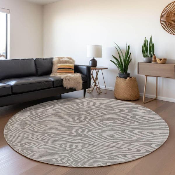 Mayfield Premium Machine Washable Abstract AMF1020 Taupe 8 ft. x 8 ft. Round Rug