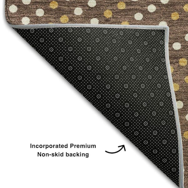 Mayfield Premium Machine Washable Abstract AMF1021 Brown 8 ft. x 8 ft. Round Rug