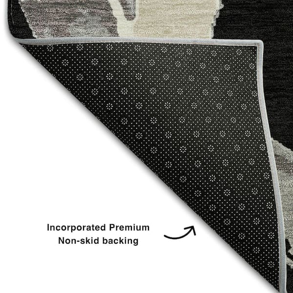 Mayfield Premium Machine Washable Abstract AMF1022 Black 8 ft. x 8 ft. Round Rug