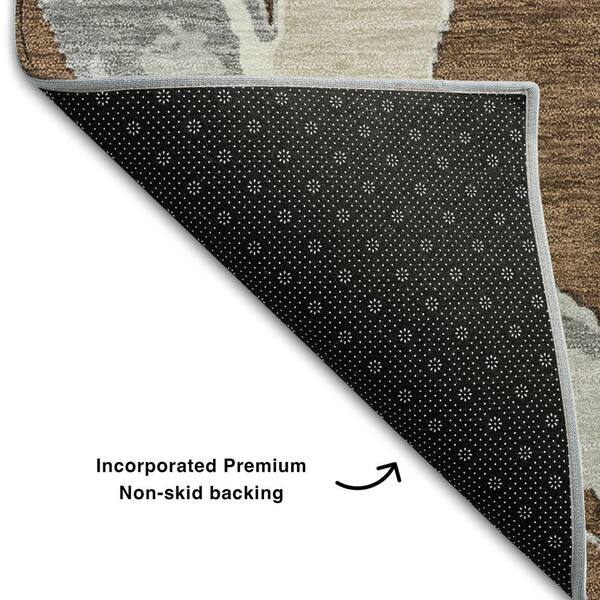 Mayfield Premium Machine Washable Abstract AMF1022 Brown 8 ft. x 8 ft. Round Rug