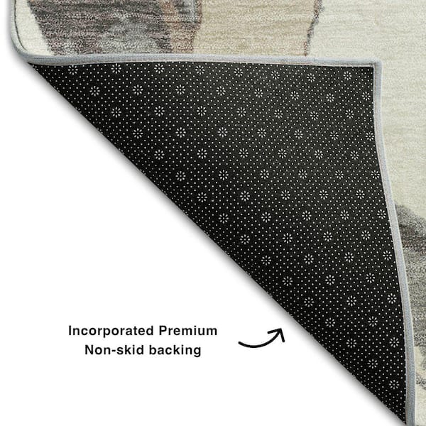 Mayfield Premium Machine Washable Abstract AMF1022 Ivory 8 ft. x 8 ft. Round Rug
