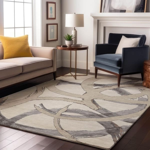 Mayfield Premium Machine Washable Abstract AMF1022 Ivory 9 ft. x 12 ft. Area Rug