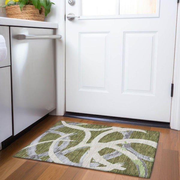 Mayfield Premium Machine Washable Abstract AMF1022 Olive 2 ft. x 3 ft. Area Rug
