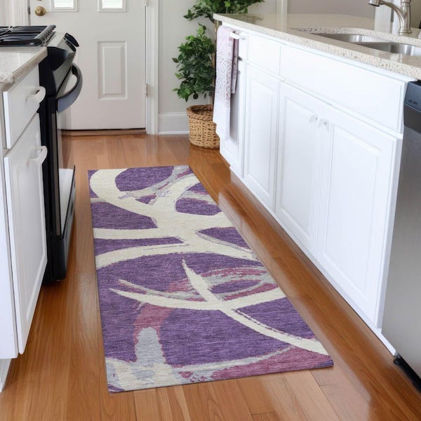 Mayfield Premium Machine Washable Abstract AMF1022 Purple 2 ft. 3 in. x 7 ft. 6 in. Runner Rug