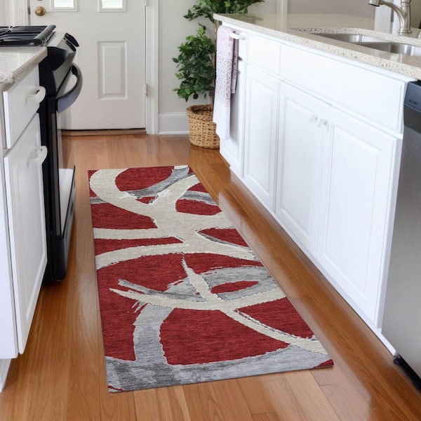 Mayfield Premium Machine Washable Abstract AMF1022 Red 2 ft. 3 in. x 7 ft. 6 in. Runner Rug