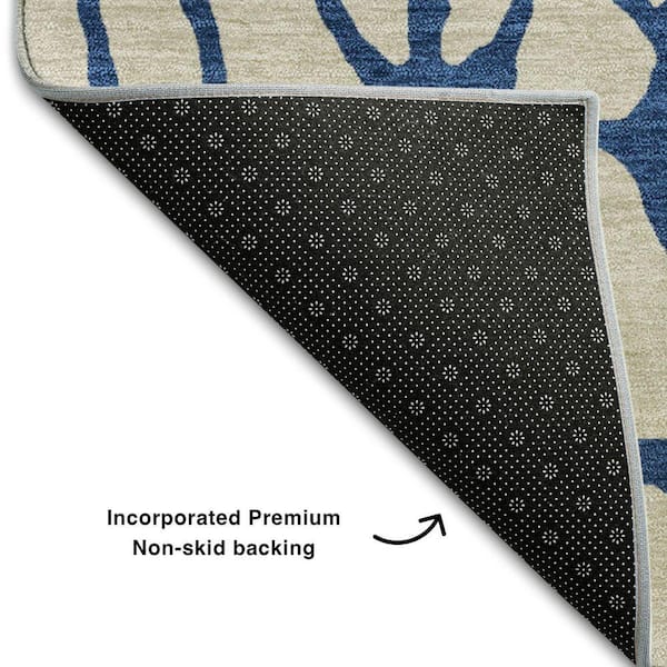 Mayfield Premium Machine Washable Abstract AMF1023 Beige 8 ft. x 8 ft. Round Rug