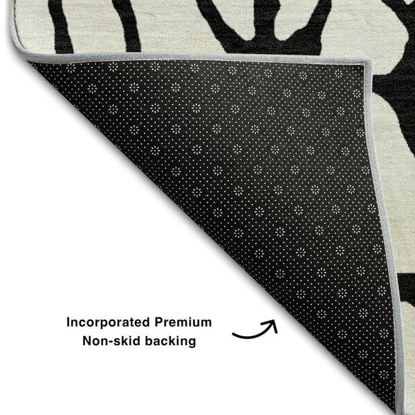 Mayfield Premium Machine Washable Abstract AMF1023 Ivory 8 ft. x 8 ft. Round Rug