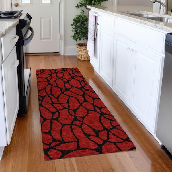 Mayfield Premium Machine Washable Abstract AMF1023 Red 2 ft. 3 in. x 7 ft. 6 in. Runner Rug