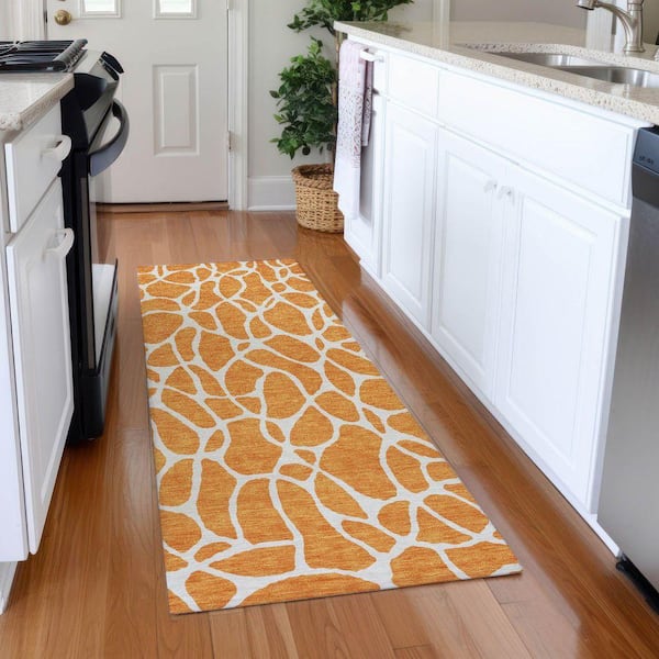Mayfield Premium Machine Washable Abstract AMF1024 Orange 2 ft. 3 in. x 7 ft. 6 in. Runner Rug