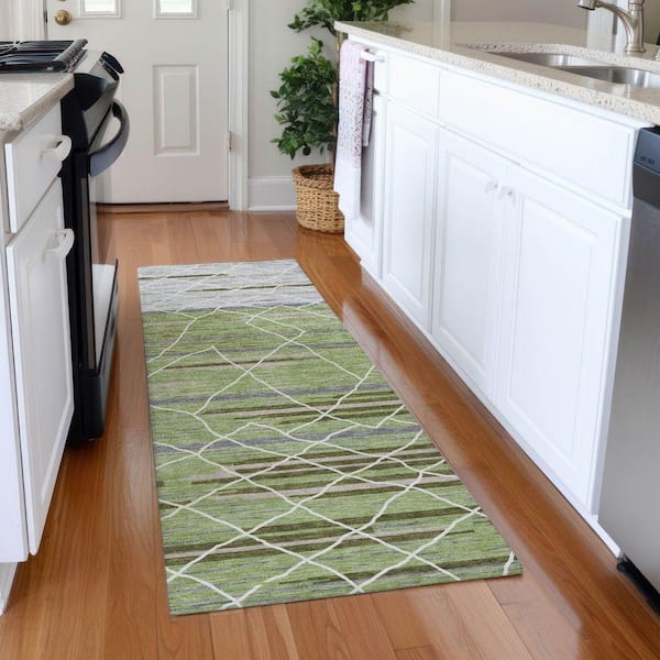 Mayfield Premium Machine Washable Abstract AMF1025 Aloe 2 ft. 3 in. x 7 ft. 6 in. Runner Rug