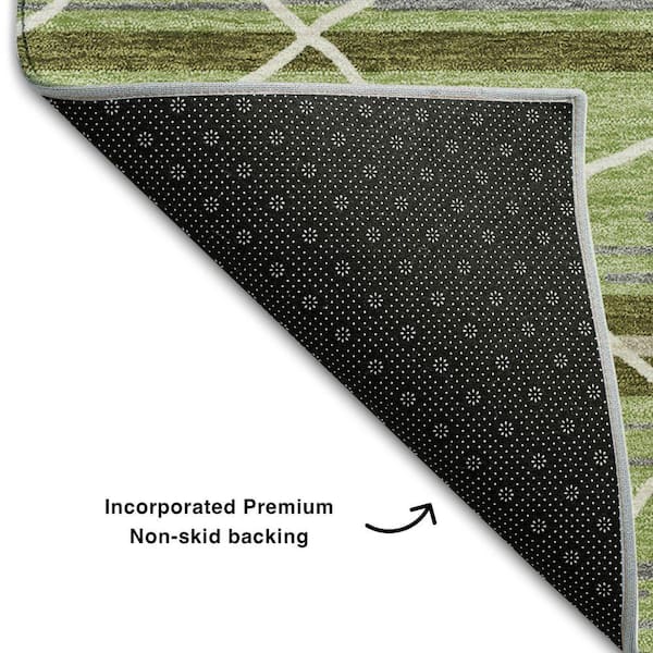 Mayfield Premium Machine Washable Abstract AMF1025 Aloe 8 ft. x 8 ft. Round Rug