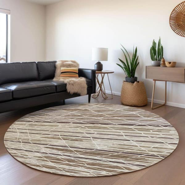 Mayfield Premium Machine Washable Abstract AMF1025 Beige 8 ft. x 8 ft. Round Rug