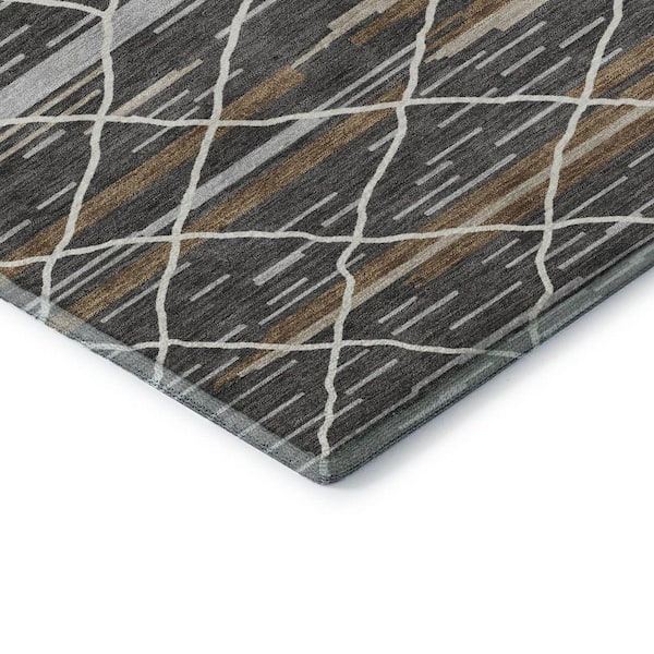 Mayfield Premium Machine Washable Abstract AMF1025 Charcoal 3 ft. x 5 ft. Area Rug