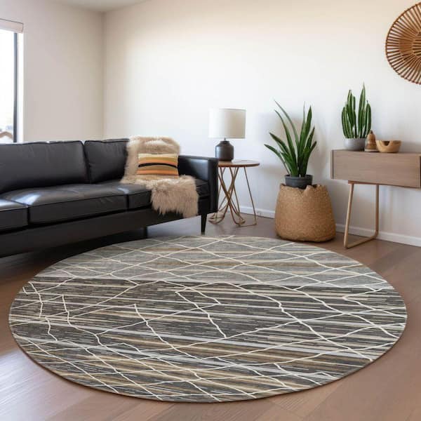 Mayfield Premium Machine Washable Abstract AMF1025 Charcoal 8 ft. x 8 ft. Round Rug