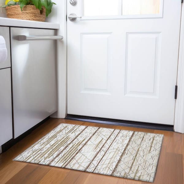 Mayfield Premium Machine Washable Abstract AMF1025 Ivory 2 ft. x 3 ft. Area Rug