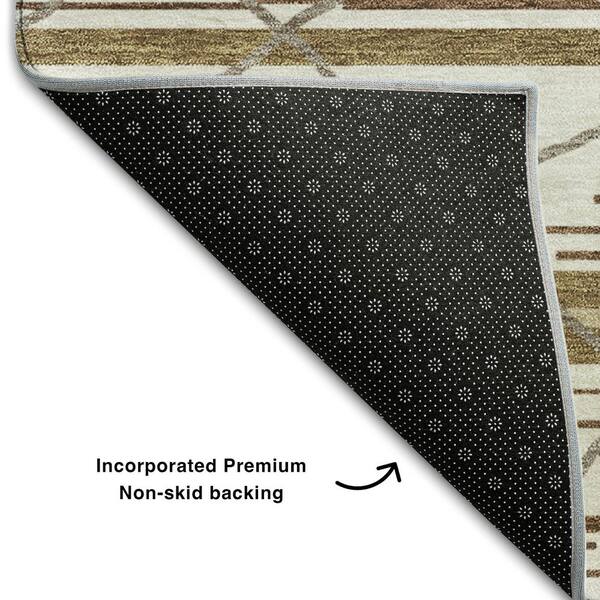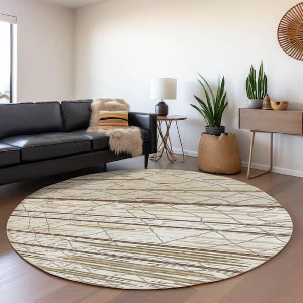 Mayfield Premium Machine Washable Abstract AMF1025 Ivory 8 ft. x 8 ft. Round Rug