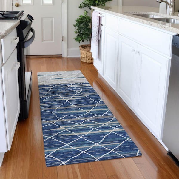 Mayfield Premium Machine Washable Abstract AMF1025 Navy 2 ft. 3 in. x 7 ft. 6 in. Runner Rug