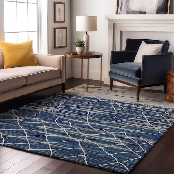 Mayfield Premium Machine Washable Abstract AMF1025 Navy 8 ft. x 10 ft. Area Rug