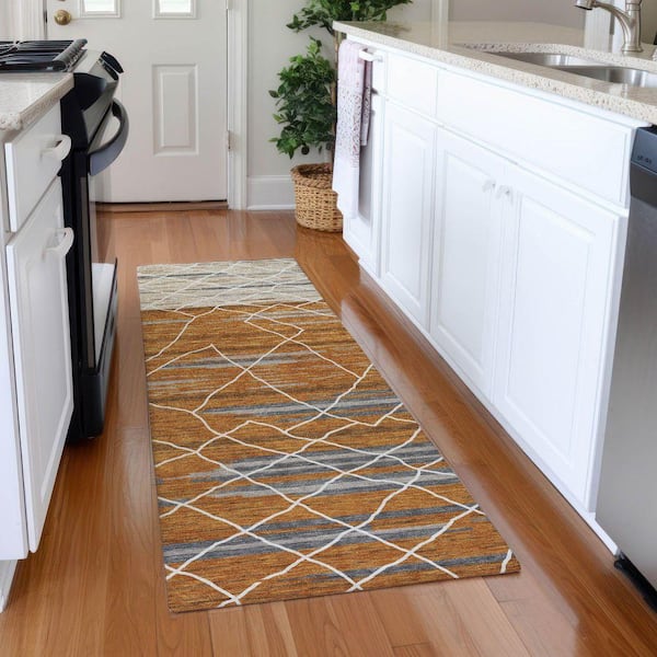 Mayfield Premium Machine Washable Abstract AMF1025 Terracotta 2 ft. 3 in. x 7 ft. 6 in. Runner Rug