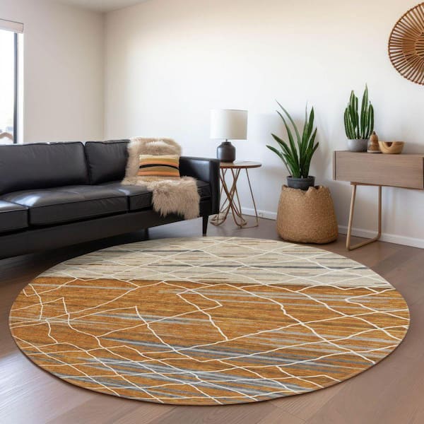 Mayfield Premium Machine Washable Abstract AMF1025 Terracotta 8 ft. x 8 ft. Round Rug