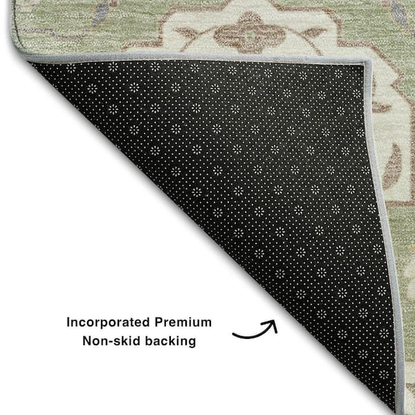 Mayfield Premium Machine Washable Abstract AMF1026 Aloe 8 ft. x 8 ft. Round Rug