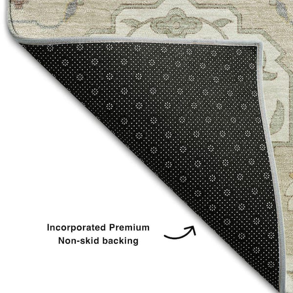 Mayfield Premium Machine Washable Abstract AMF1026 Beige 8 ft. x 8 ft. Round Rug
