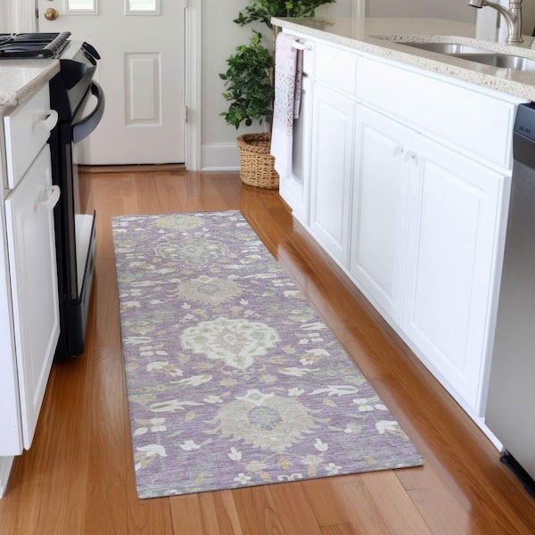 Mayfield Premium Machine Washable Abstract AMF1026 Lavender 2 ft. 3 in. x 7 ft. 6 in. Runner Rug