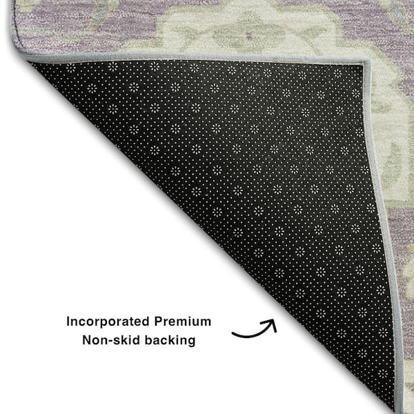 Mayfield Premium Machine Washable Abstract AMF1026 Lavender 8 ft. x 8 ft. Round Rug
