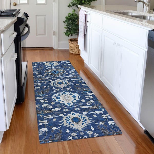 Mayfield Premium Machine Washable Abstract AMF1026 Navy 2 ft. 3 in. x 7 ft. 6 in. Runner Rug