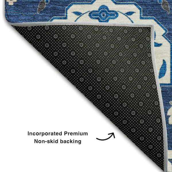 Mayfield Premium Machine Washable Abstract AMF1026 Navy 8 ft. x 8 ft. Round Rug