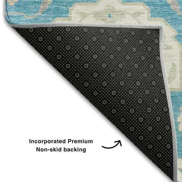 Mayfield Premium Machine Washable Abstract AMF1026 Teal 8 ft. x 8 ft. Round Rug