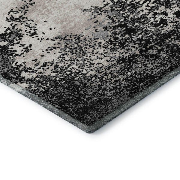 Mayfield Premium Machine Washable Abstract AMF1027 Black 2 ft. 3 in. x 7 ft. 6 in. Runner Rug