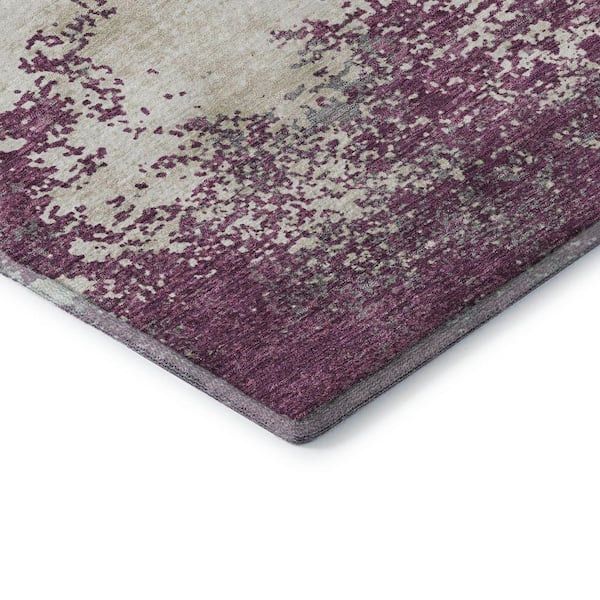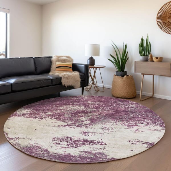 Mayfield Premium Machine Washable Abstract AMF1027 Eggplant 8 ft. x 8 ft. Round Rug