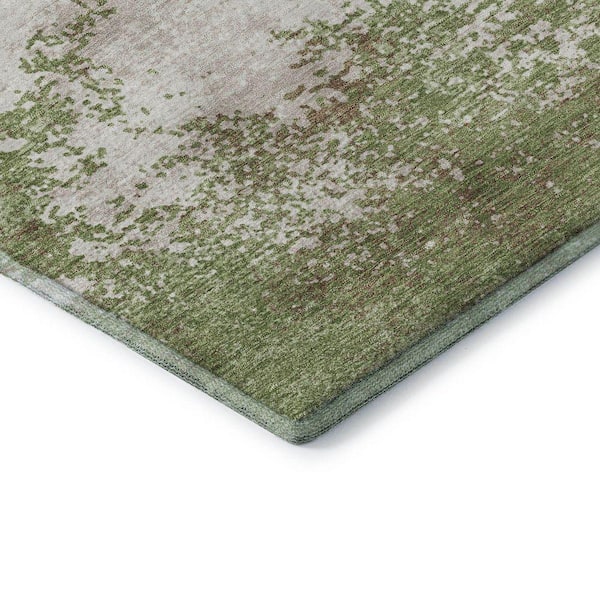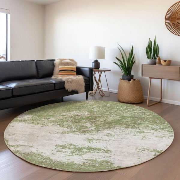 Mayfield Premium Machine Washable Abstract AMF1027 Green 8 ft. x 8 ft. Round Rug