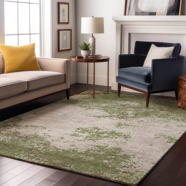 Mayfield Premium Machine Washable Abstract AMF1027 Green 9 ft. x 12 ft. Area Rug