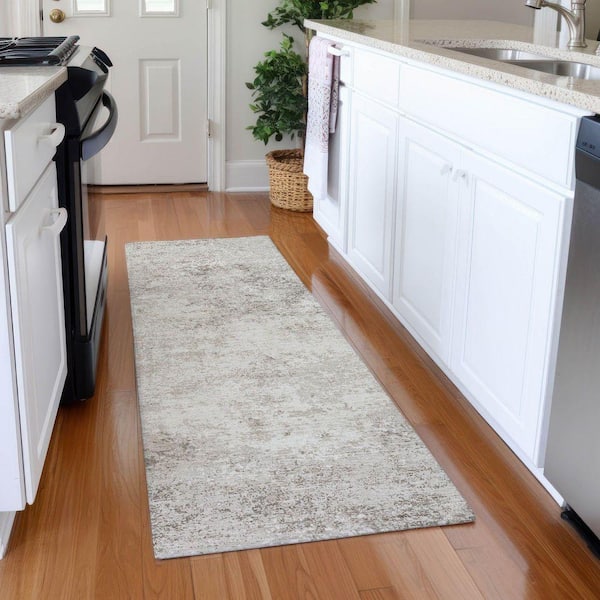 Mayfield Premium Machine Washable Abstract AMF1027 Ivory 2 ft. 3 in. x 7 ft. 6 in. Runner Rug